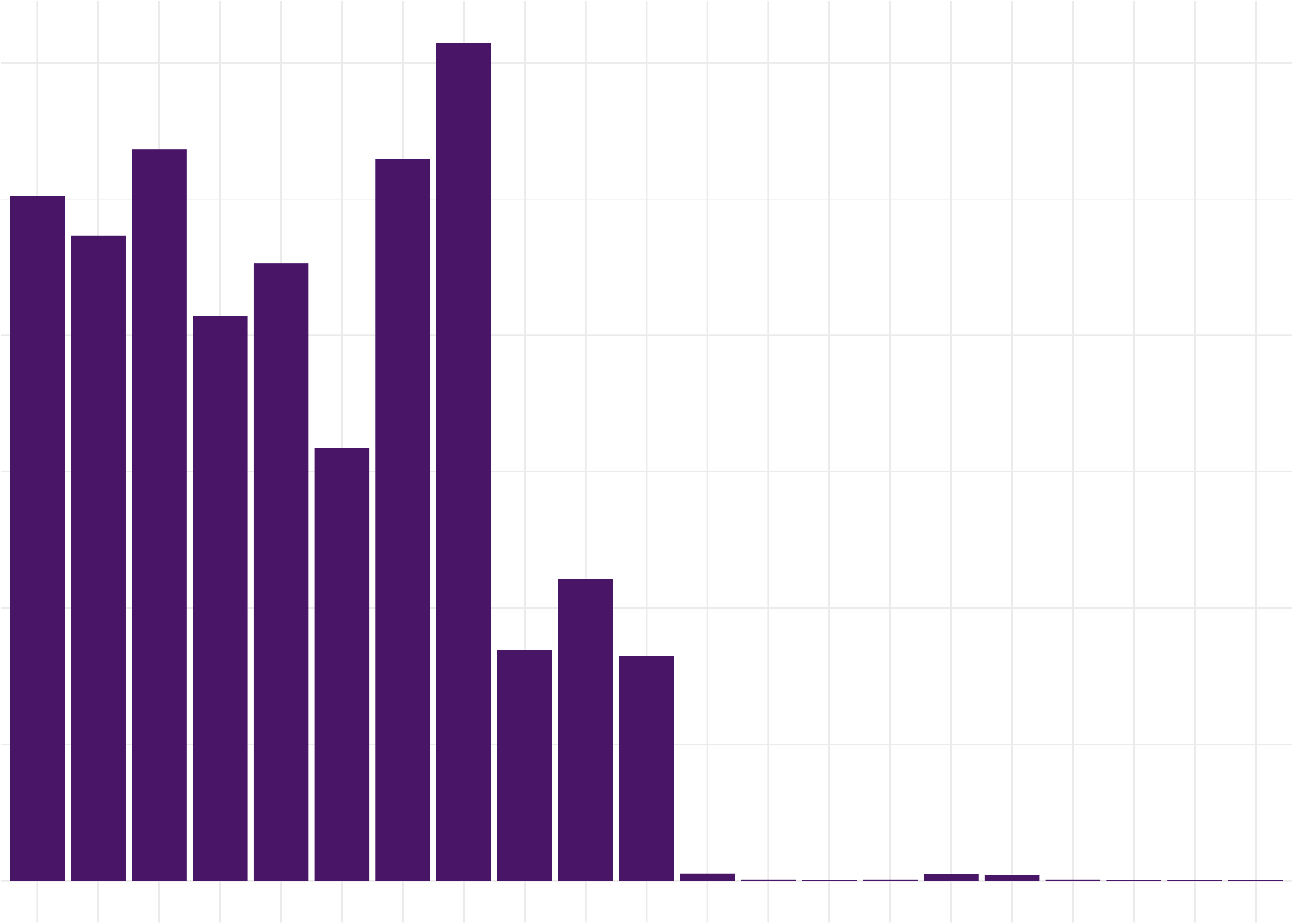 First, we have all the data for the value “event_date”. We can group the events by year, in order to see which years have more landslides.